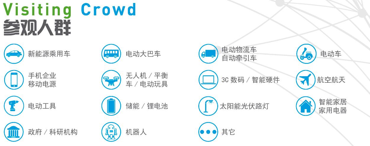深圳鋰電技術展作為鋰電行業全產業鏈的盛會,是鋰電行業知名的權威展示平臺,具有展品范圍全,規模面積大的特點。深圳鋰電技術展觀眾主要來自鋰電池產業鏈上中下游企業,以及包括新能源乘用車,電動客車,電動物流車,電動車,智能手機,機器人,電動玩具,移動電源,家用電器,航空航天,太陽能光伏路燈,自動導引車,智能家居,智能硬件,無人機,平衡車,儲能,政府和科研單位等等。