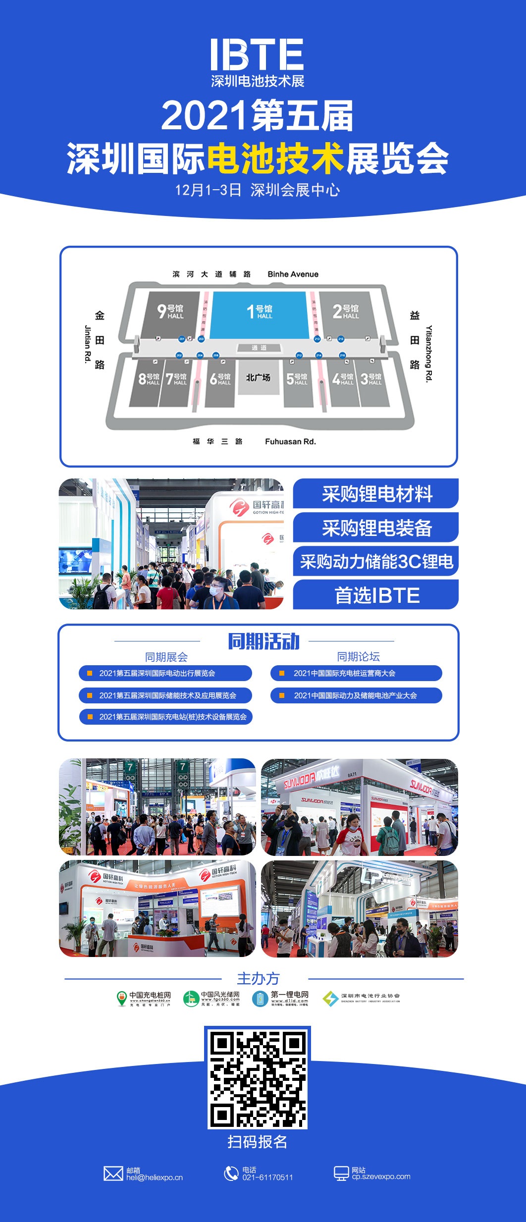 2021第五屆深圳國際電池技術展覽會,簡稱:深圳電池技術展IBTE,作為行業首屈一指的專業電池技術展,是國內唯一一個以動力、儲能、3C電池為核心,聚焦材料、設備、電芯,給采購商提供一站式服務的技術展,將于12月1-3日在深圳會展中心隆重舉辦。本屆展會由深圳市電池行業協會、深圳市新能源行業協會、江蘇省動力及儲能電池產業創新聯盟、鋰電百人會以及充換電百人會聯合主辦,由上海賀勵展覽有限公司、賀勵展覽(深圳)有限公司承辦!