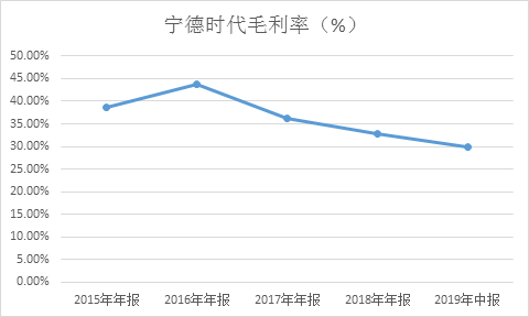 自上市以來披露的數據顯示,2015年至2018年度及2019年上半年毛利率分別為38.64%、43.70%、36.29%、32.79%以及29.79%,除2016年外,整體毛利率明顯呈現下滑趨勢。