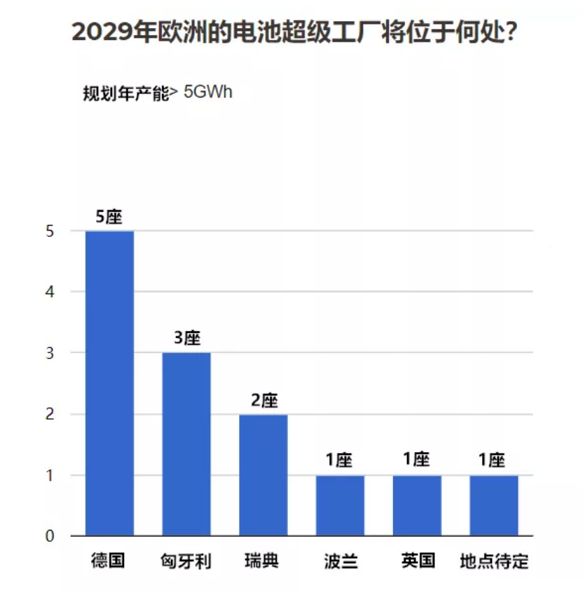 歐洲正在籌建中的鋰離子電池新工廠主要位于德國,包括位于Erfurt的寧德時代(CATL)歐洲工廠,位于薩克森-安哈爾特州的孚能(Farasis)電池工廠,位于北薩爾茨吉特的Northvolt與大眾汽車的合資工廠,以及計劃在柏林建設的特斯拉Gigafactory 4。