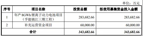 根據招股書,孚能科技預計募集資金34億元,用于年產8GWh動力電池擴產項目和補充運營資金。